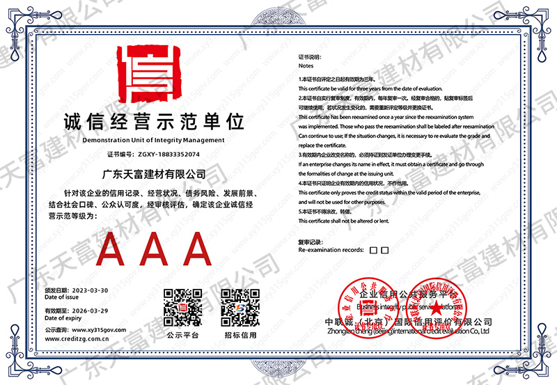 誠信經(jīng)營標(biāo)桿企業(yè)